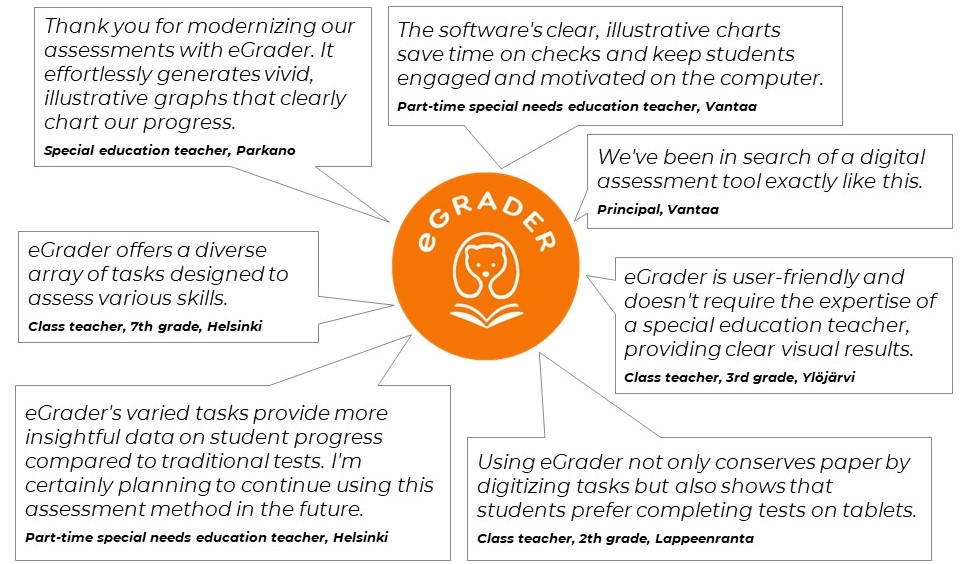 eGrader presents results to users at the student, class, school, and municipal levels, thereby enabling more precise targeting of resources. If you are interested in using the tool, please contact us: lauri@lukuseula.fi